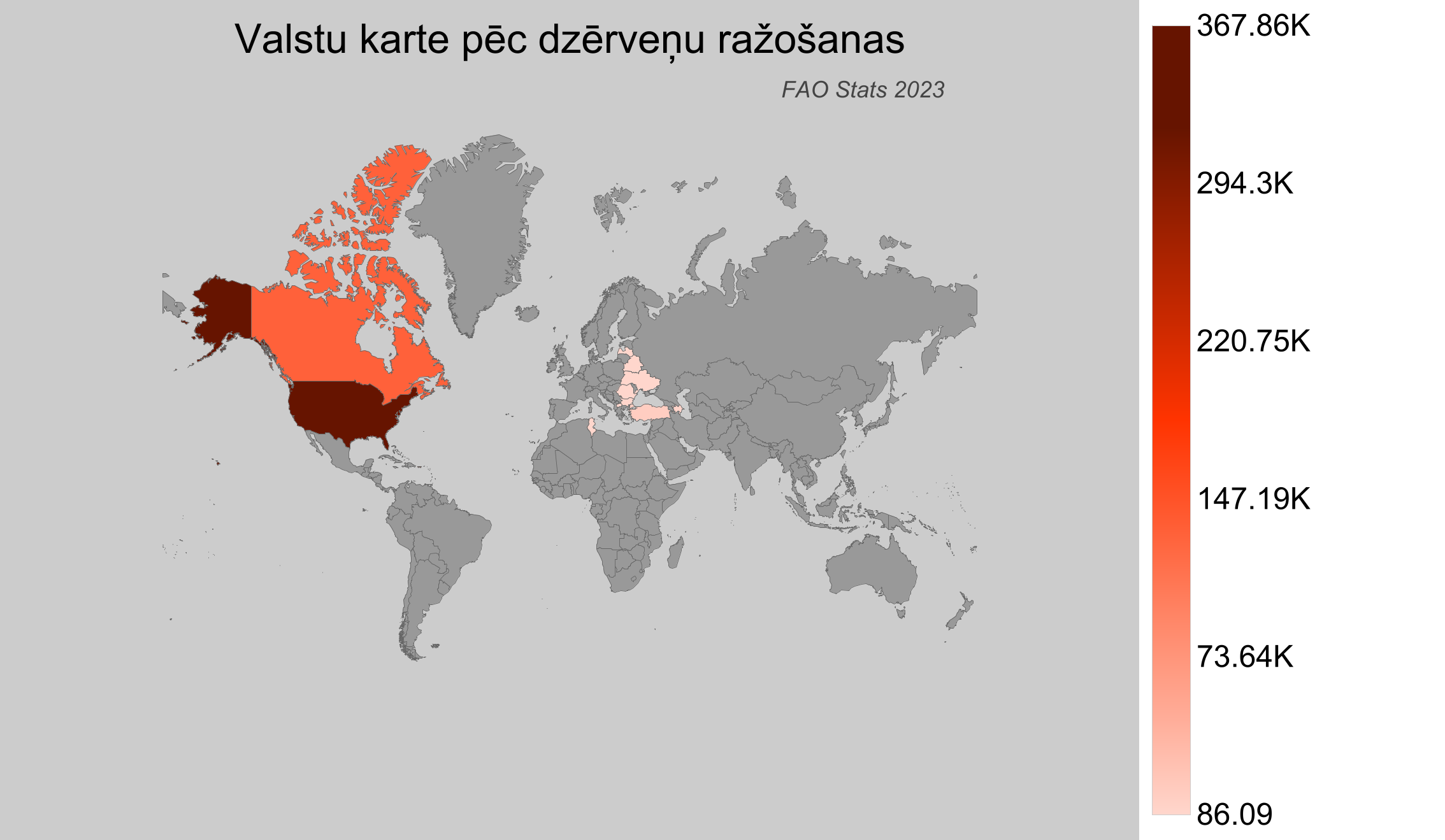 - Lai gan Latvija nav starp galvenajiem ražotājiem, tā ražo ap 364 tonnām, pieskaitot savu nozīmi kopējā produkcijā.