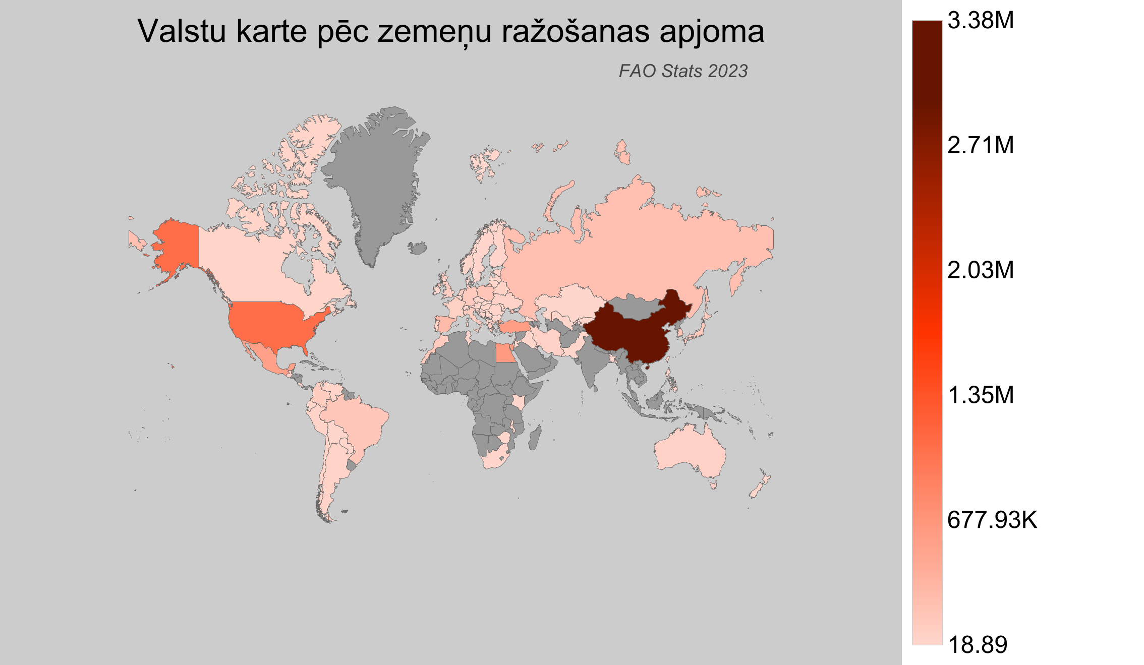 - Ķīna ir pasaulē lielākā zemeņu ražotāja ar aptuveni 3.39 miljoniem tonnu.
